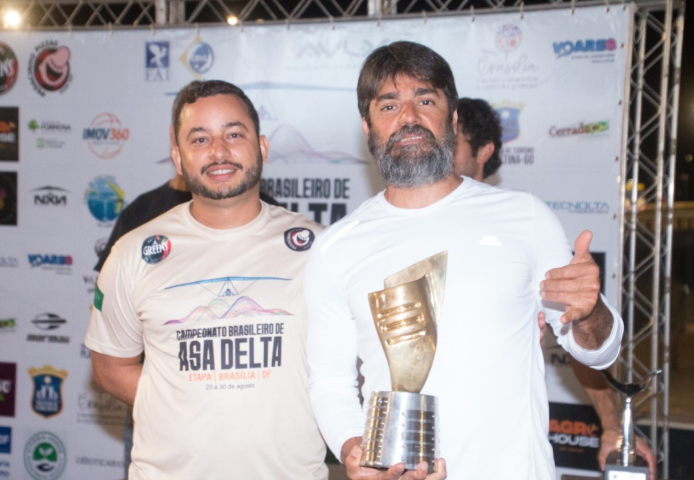 O brasiliense Glauco Pinto ganhou ontem seu terceiro troféu – o segundo seguido – de campeão brasileiro de asa delta na categoria Elite. Glauco e mais de 50 pilotos decolaram da Rampa Dr. José Menck, na Serra do Paranã, no Planalto Central, para cumprir a última prova da competição e aguardar a divulgação dos resultados. Em sete tasks, o agora tricampeão nacional venceu três, ficou em segundo em uma, terceiro em outra, além de um sétimo lugar, terminando a etapa de Brasília com o vice-campeonato. No geral, após dois eventos, Glauco Pinto somou pontos importantes e faturou o tricampeonato com folga.