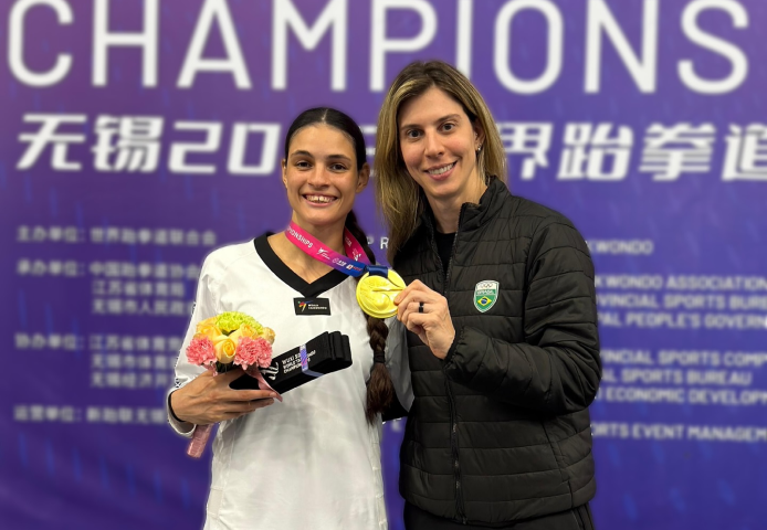O Campeonato Mundial de Taekwondo começou nesta sexta-feira, em Wuxi, na China, com um excelente resultado para o Brasil. A atleta natural de São Vicente (SP), Maria Clara Pacheco, conquistou a medalha de ouro na categoria até 57 quilos e se tornou a terceira taekwondista brasileira (contando o Mundial Feminino de 2021) a ganhar o maior evento da modalidade. Líder do ranking, Maria Clara venceu as cinco lutas perdendo apenas um round. A paulista despachou, na semifinal, Luo Zongshi (CHN), atual campeã do mundo, venceu a coreana do sul Kim Yu-jin na final e garantiu seu lugar no alto do pódio, repetindo o feito de Natália Falavigna em 2005 e de Caroline dos Santos em 2021.