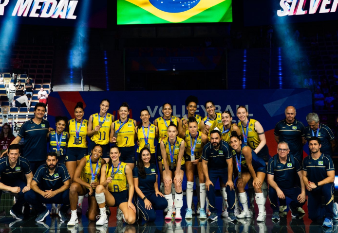 A sétima edição da Liga das Nações feminina, que começou em quatro de junho, terminou neste domingo (27) premiando as três melhores seleções do torneio. Depois de comemorar a vitória da Polônia sobre o Japão (3 a 1), que deu o bronze às anfitriãs, o público presente à Atlas Arena, em Lódz (POL), viu a atual campeã olímpica Itália vencer o Brasil (3 a 1) e conquistar o tricampeonato da Liga. A seleção brasileira, que realizou excelente campanha, com 13 triunfos em 15 jogos, faturou a medalha de prata e agora se prepara para mais um desafio: O Mundial da Tailândia no mês que vem.