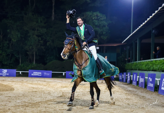 O paulista José Roberto Reynoso Fernandez Filho tornou-se, neste domingo (13), hexacampeão do Brasileiro de Salto. Sua conquista de número seis aconteceu no Clube Hípico de Santo Amaro (SP), sexta das 11 etapas do Circuito Sênior Top 2025, e válida para premiar o campeão nacional. Vitorioso pela última vez em 2020, José Roberto montou este ano a égua Tanagra. O conjunto finalizou as três provas do GP Final com apenas uma falta na primeira volta e com pista limpa na segunda, garantindo o título na capital paulista. O vice-campeonato ficou com o brasiliense Flávio Grillo e a terceira posição com o carioca Stephan Barcha.