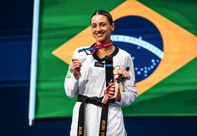 A paulista de 27 anos, Milena Titoneli, ganhou nesta terça-feira, mais uma medalha para o Brasil no Mundial de Taekwondo, que acontece na cidade de Wixu, na China. Dona de dois bronzes nas edições de 2019 e 2022 do evento, Titoneli foi mais longe este ano e subiu mais um degrau do pódio.  A brasileira chegou à final dos 67kg depois de vencer concorrentes do México, da Rússia, do Egito e da Nigéria até decidir o ouro contra a húngara Luana Marton, que derrotou Milena por 2 rounds a 0. A prata da taekwondista de São Caetano do Sul foi a terceira medalha do Brasil no Campeonato Mundial, que termina na quinta-feira (30).